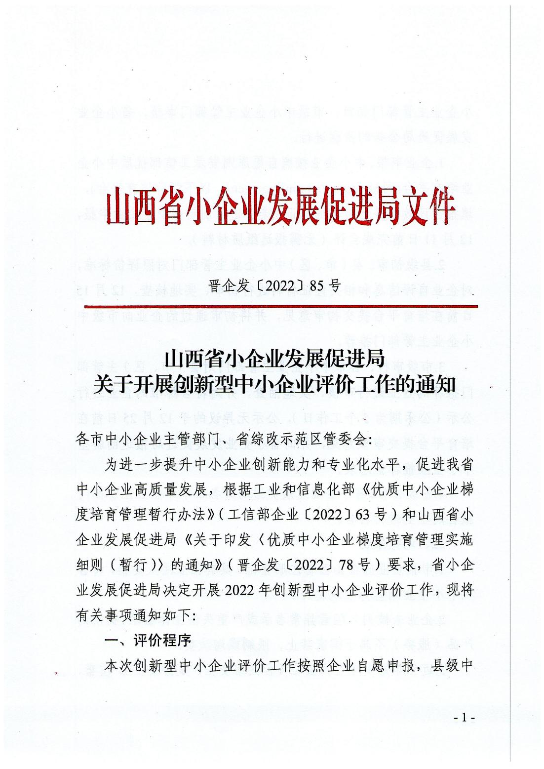關于開展創(chuàng)新型中小企業(yè)評價工作的通知